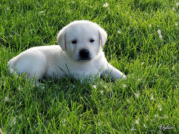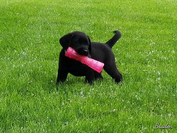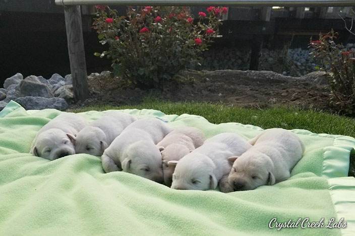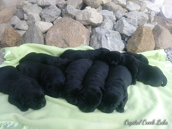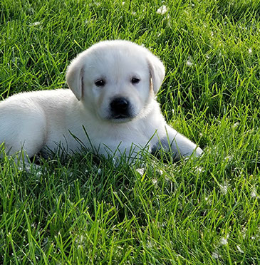 Puppies will come to you at 8 weeks after being vet-examined, with registration papers, dew claws removed, up to date vaccinations and deworming, a two day supply of puppy food, and a few of our great vitamins (NuVet Vitamins) that we use on our Lab-family.